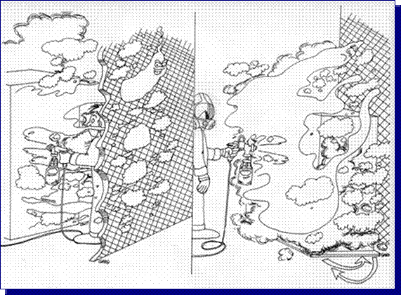 * Interdire toutes sources d’inflammation : flamme nue, cigarettes et surfaces découvertes dont la température dépasse le point d’éclair de la substance pulvérisée (distance minimale de 6 mètres de la zone d’application au pistolet).